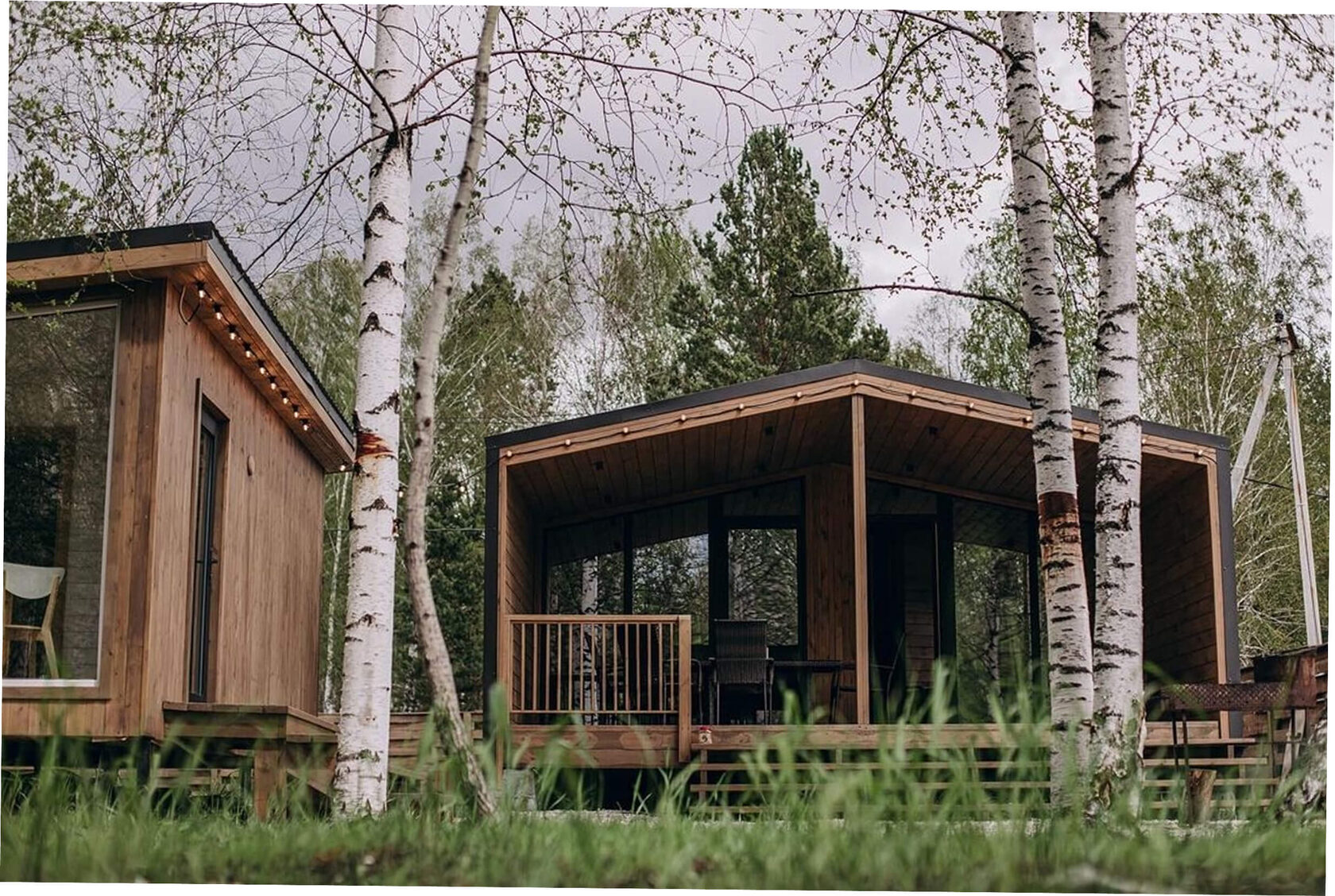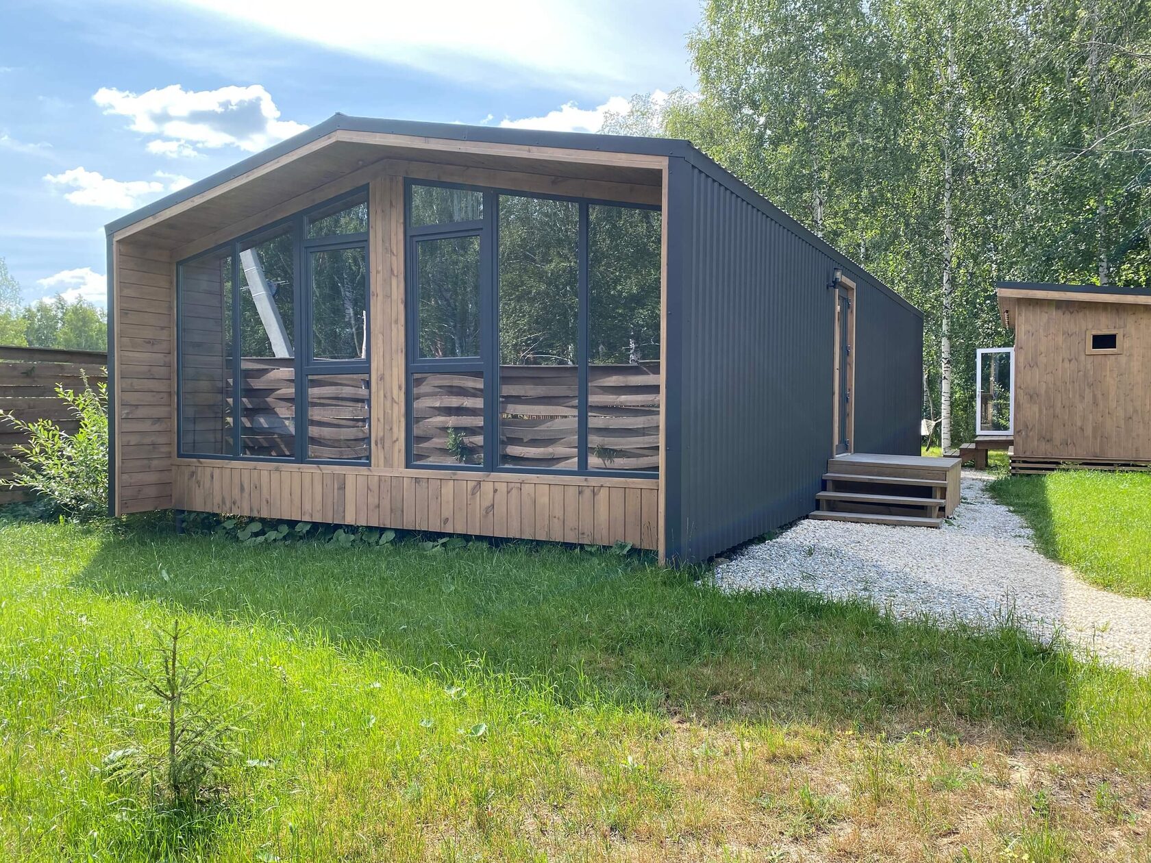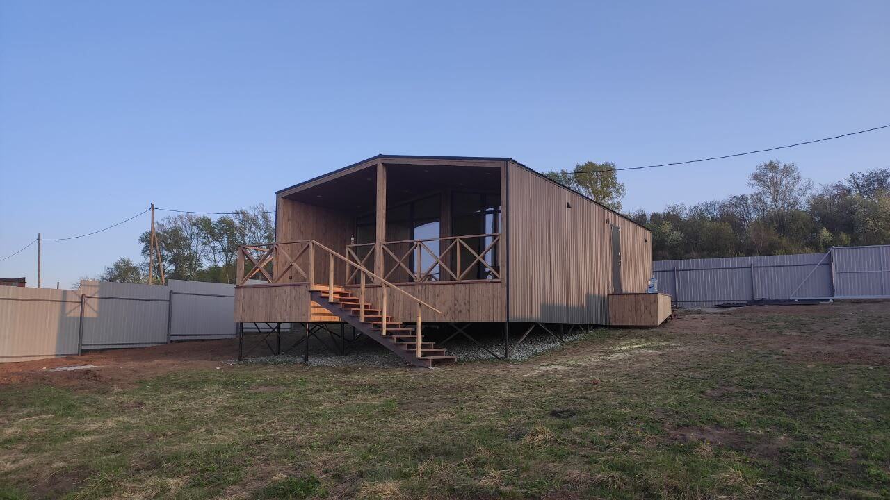 Комбинированная отделка: имитация бруса из хвои и металлический профлист с окраской. По желанию — планкен.