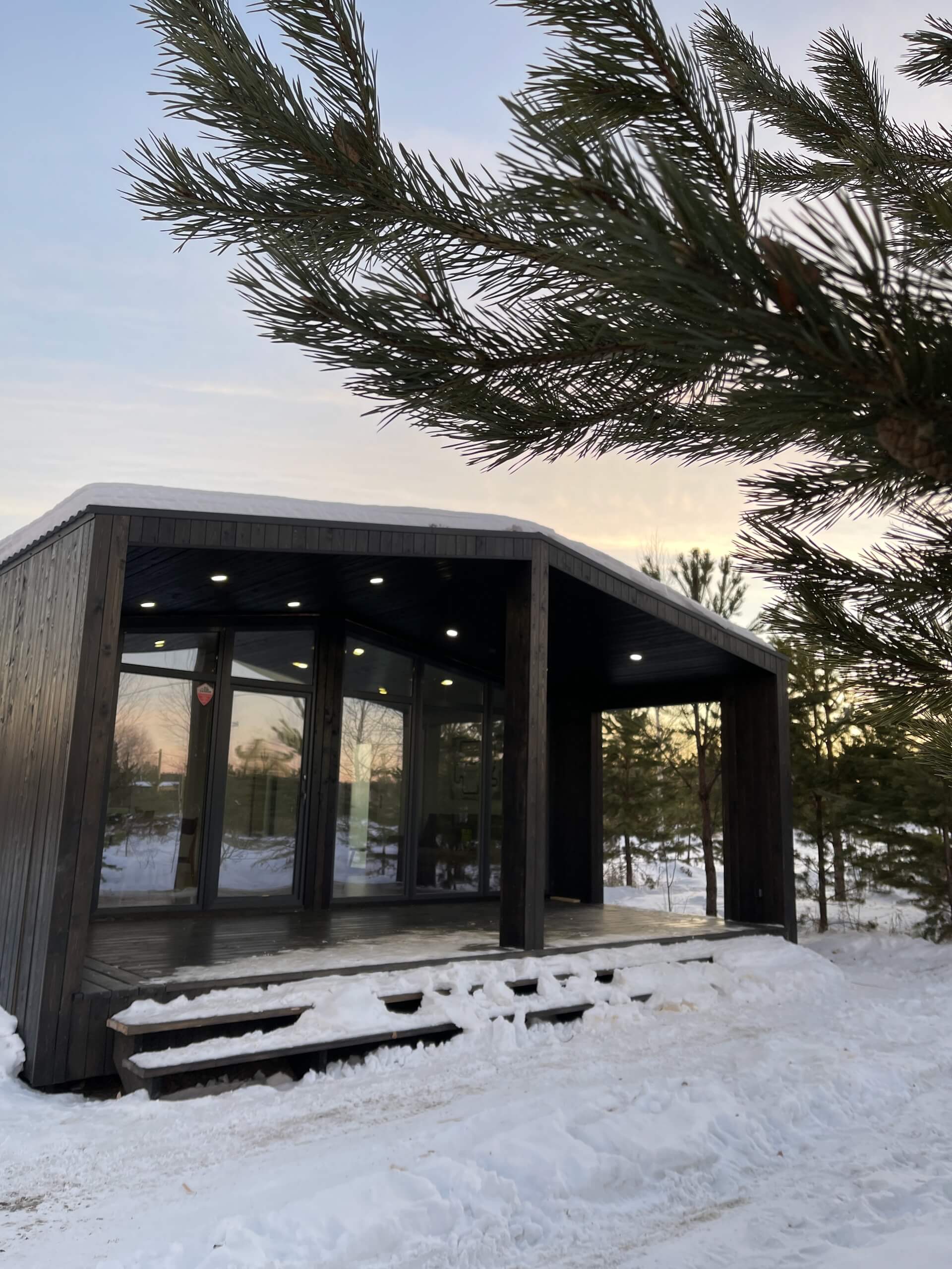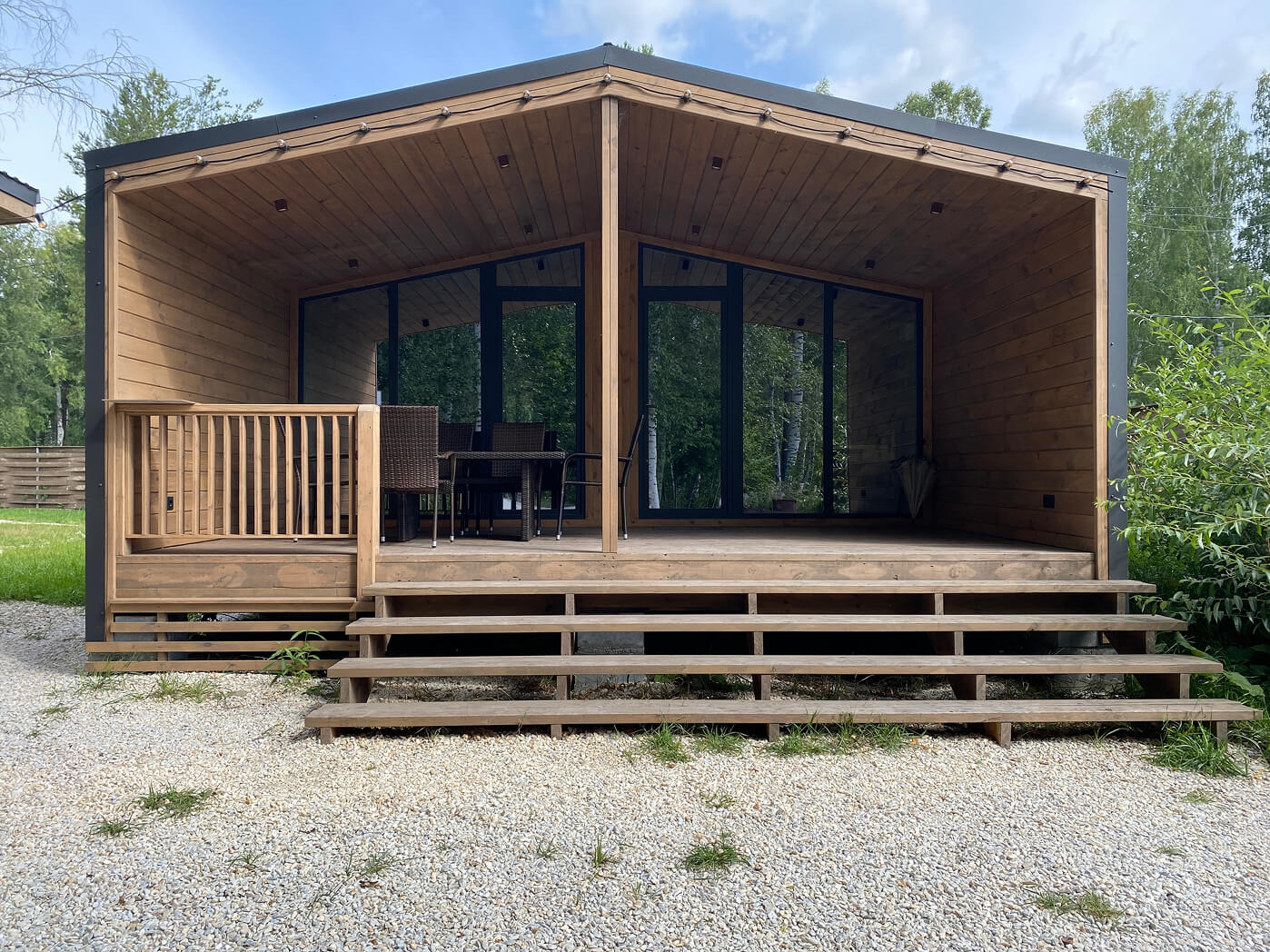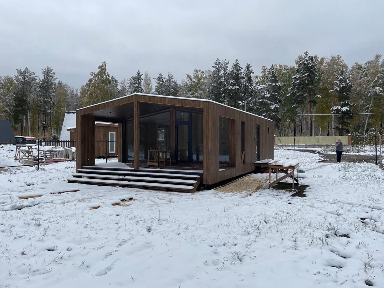 Силовой каркас из доски камерной сушки, обработанный огне-биозащитой, пакеты досок склеиваются специальным герметиком, чтобы исключить промерзание швов.